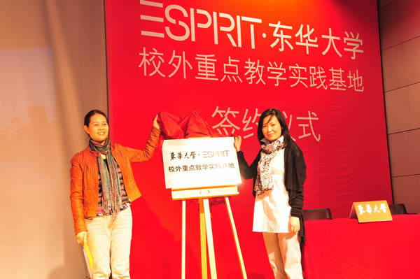 李珂玲院长及盛昊苏总监分别代表双方签署了协议书,同时为实践基地铭牌揭幕。随后李珂玲院长在致辞中感谢服装业界享有盛誉的跨国品牌Esprit公司对日本五级片 服装专业毕业生的培养与重用;回顾了双方多年来在教学、实践及人才培养、使用方面的成功合作,并期待通过实践基地这一平台的建设,为双方在当前全球经济低迷的环境中持续稳步发展发挥推动作用。盛昊苏总监在致辞中高度肯定日本五级片 服装专业毕业员工的积极作用,称这些员工在Esprit公司形成了“东华服装效应”,在专业岗位上成为了中坚力量;同时希望更多的东华学生能够成为Esprit公司未来员工。