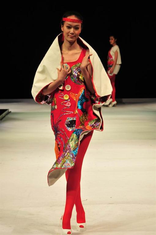 大赛开始,模特们身着毕业生们的作品缓缓走上T台,自信的步伐搭配着强有力的节奏,演绎着如时空穿梭般的精美画面。《变》的诡秘、《恋恋降落伞》的新奇、《什么》的可爱、《通道》的大方、《释放》的纯洁、《潘多拉的盒子》的出奇、《花非花》的典雅、《编制微笑》的精巧、《True Around》的优雅、《幻》的绮丽、《幻想·爱》的俏皮、《洛·裳》的古风、《米奇伴我行》的童趣、《流年》的素雅、《禾芷》的娴静……选手们风格迥异的作品中蕴含了各色的思维与想法,或奇或异,但却足以吸引眼球——场内的相机闪光灯从未停歇,大家都为一件件为美诞生的作品所折服。