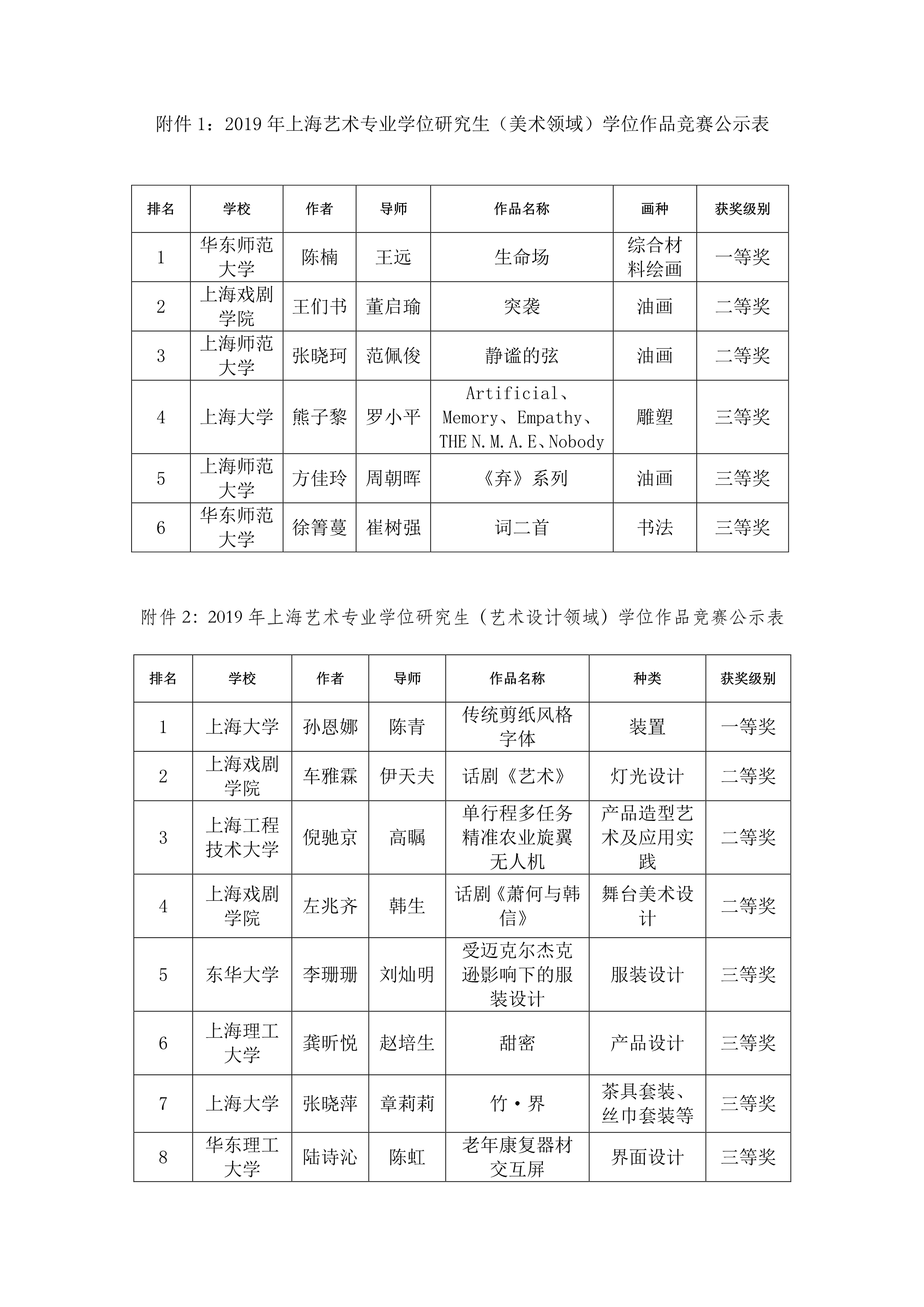 2019年上海艺术专业学位研究生 (美术、艺术设计领域)学位作品竞赛获奖公示