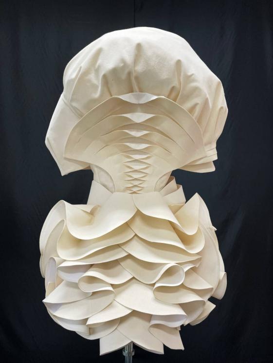 立体裁剪主要以动手操作为主,在制作过程中需要敏锐捕捉到布料与人体之间的立体空间感,以及人体各部位的的线条与结构。而面临图纸中如此复杂的结构,更需要有丰富的专业知识和足够的耐心,中日合作19级的黄蔚君也鼓励即将要上日本文化服装学院立裁课程、以及明年四月赴日的学弟学妹们,多动手实践理解知识,做出更多优秀的作品。
