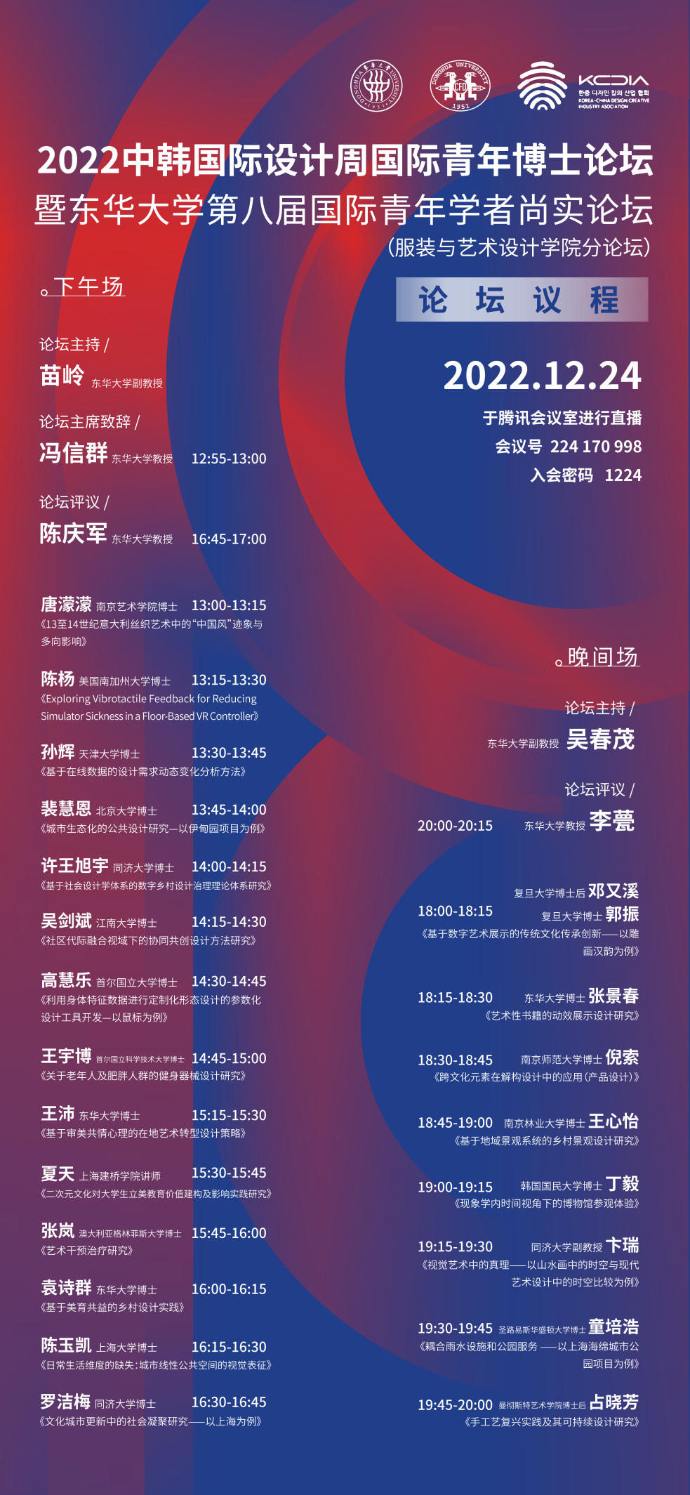 2022年12月24日,2022中韩国际设计周国际青年博士论坛暨日本五级片 第八届国际青年学者尚实论坛( 日本五级片 分论坛)在腾讯会议顺利召开。