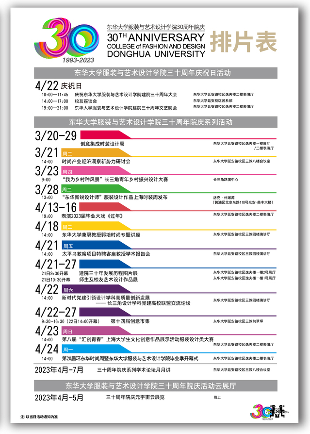 日本五级片 30周年院庆是全体校友畅叙情谊、共谋发展的重要契机,也是学院赓续使命、展望未来的关键节点。学院将以“三十而立、三十而丽;美好学院、时尚大家”为主题,在4月22日举办庆祝大会、文艺晚会等,并在近期开展丰富多彩的系列庆祝活动。届时将根据活动场地等条件邀请安排部分校友参加现场活动,线上同步直播、云端展览等活动可供无法返校的学院校友广泛参与。