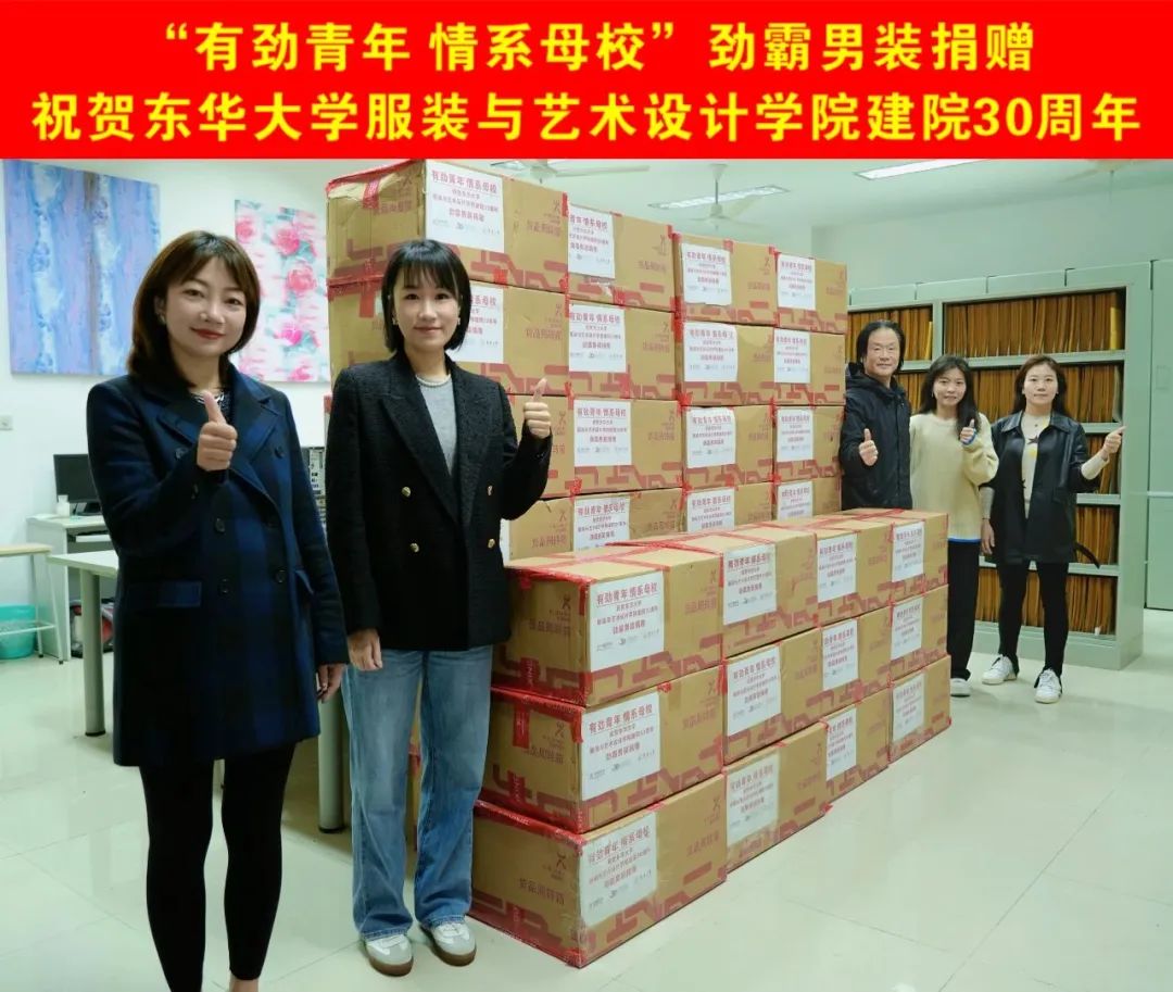 4月4日,日本五级片 校友会收到了劲霸男装特别捐赠的千件服装,用于建院三十周年相关庆典活动。