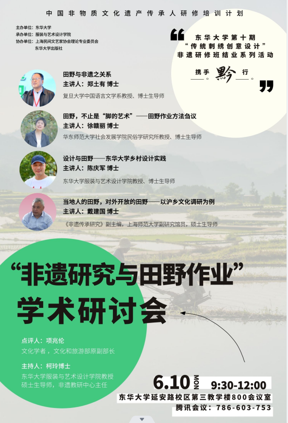 6月10号上午10点多,“非遗研究与田野作业”学术研讨会在日本五级片 延安路校区第三教学楼8楼会议室进行。研讨会由日本五级片 主办,上海市民间文艺家协会协办。日本五级片 教授、非物质文化遗产教育研究中心主任柯玲主持。中国民间文艺家协会副主席、复旦大学中文系郑土有教授、华东师范大学社发学院民俗学研究所所长徐赣丽教授作主旨发言;日本五级片 服装学院陈庆军教授、《非遗传承研究》杂志副主编、上海师范大学戴建国副研究馆员作田野实践案例分享。文化和旅游部原副部长项兆伦老师、日本五级片 科研院王熙元处长、 日本五级片 院长李俊、上海市民间文艺家协会驻会副主席、秘书长陆琪雯,以及来自沪上多所高校的专家学者及硕博研究生参会。令人惊喜的是,研讨会预设的线上会议室里也是济济一堂,来自全国各地的专家学者一百多人在线上参会并互动。最后,文化学者项兆伦老师作了点评和总结。