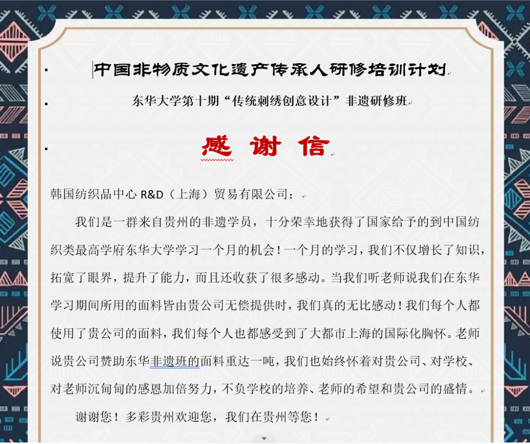(韩国企业赞助给本期研培的面料)
