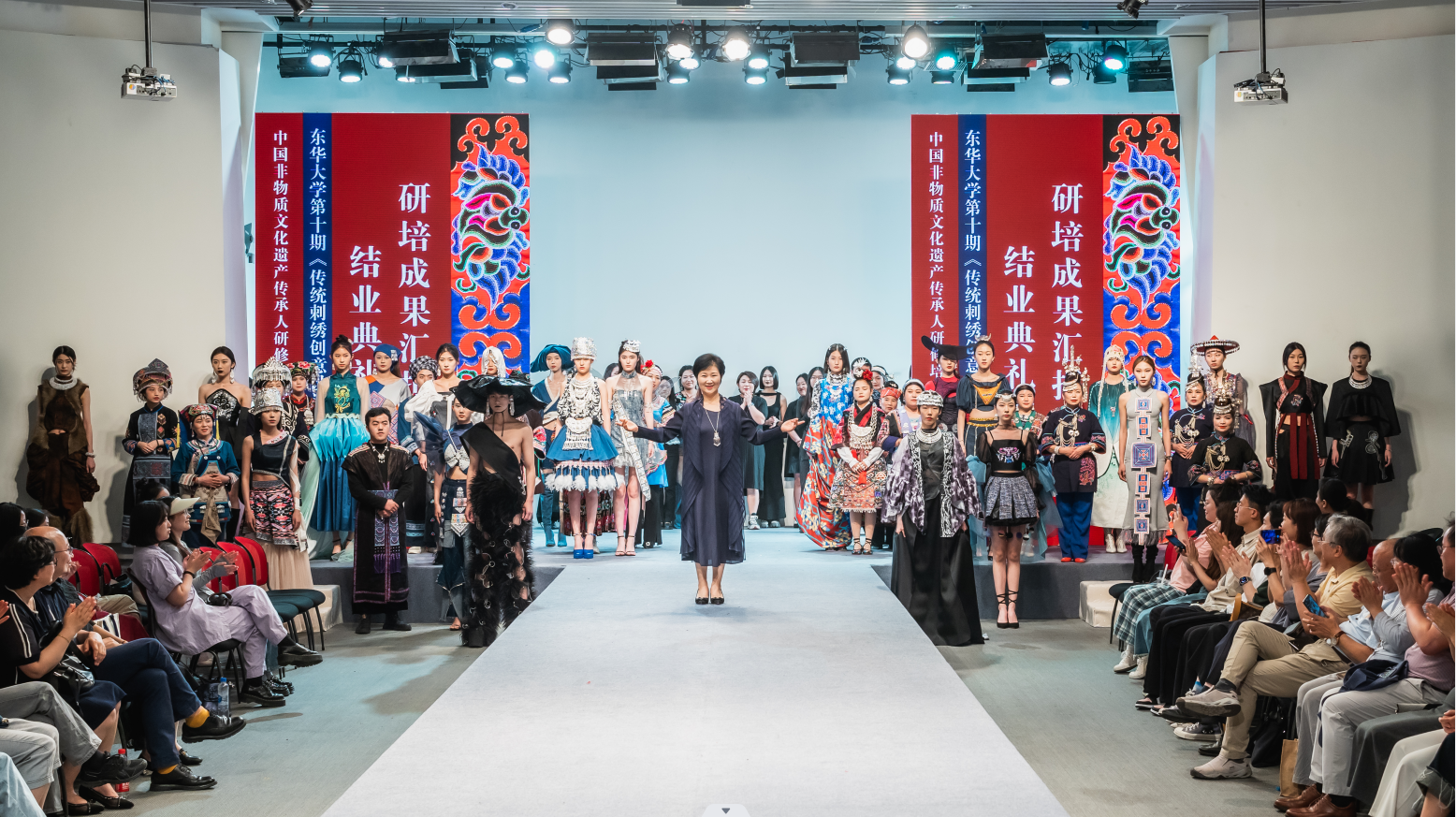 6月10日下午2点,日本五级片 延安路校区逸夫楼二楼表演厅的结业成果汇报大秀是东华第十期非遗研修的高光时刻。由服装学院非遗教育研究中心教学指导张顺爱副教授手把手指导,人盯人把关完成的22套由非遗学员和中外高校设计专业学生合作完成的非遗元素创新设计时装正式发布。