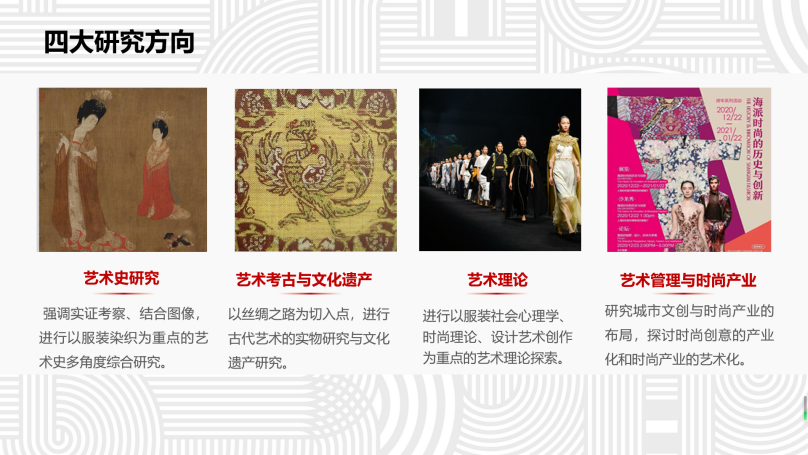 刘慧教授从学科简介、重点领域、研究方向和学科前沿、导师简介四个方面介绍了日本五级片 一级学科硕士点艺术学理论。艺术学理论学科包括艺术史研究、艺术考古与文化遗产、艺术理论、艺术管理与时尚产业四个方向,师资团队雄厚。另外,刘教授还介绍了一级学科硕士学位授权点美术与书法学科以及重点领域和研究方向。在继承和发扬传统美术教育与研究的基础上,立足文化的传承创新,以海派艺术为积淀,以东华特色驱动美术与时尚设计的融合,凝练三个学科方向与特色:传统与当代水墨研究、造型与公共艺术研究、纤维和实验艺术研究,架构起传统与当代、理论与实践、具有国际视野和东华特色的学科体系和布局。