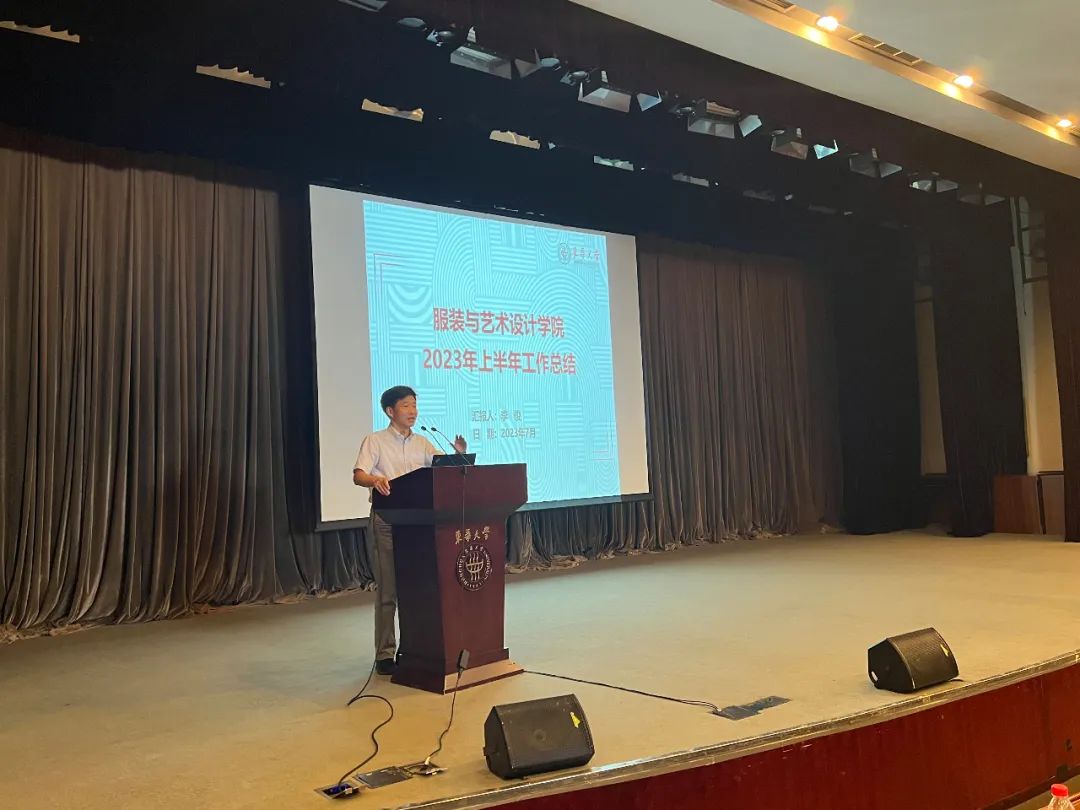 李俊院长总结报告的第二部分结合全面贯彻党的教育方针,落实立德树人根本任务,围绕学院“构建以服装为龙头,以设计为主体的时尚学科生态链,建成国内领先、国际一流的以服装科技与时尚设计为特色的综合设计学院”的发展目标,从学科建设、师资队伍建设、人才培养、科研工作、国际合作、办学条件建设、文化传承和社会服务等方面总结了2023本学期学院工作。最后,他提出未来我们要面对的三个方面的挑战,一是师资队伍的建设提升;二是培养有价值能担当学以致用可以服务社会的优质人才;三是教师队伍承担更多服务国家战略需要的科研任务。这既是挑战,更是激励全体教职工接下来更加求索深耕,为教育事业为学校学院的发展贡献力量!