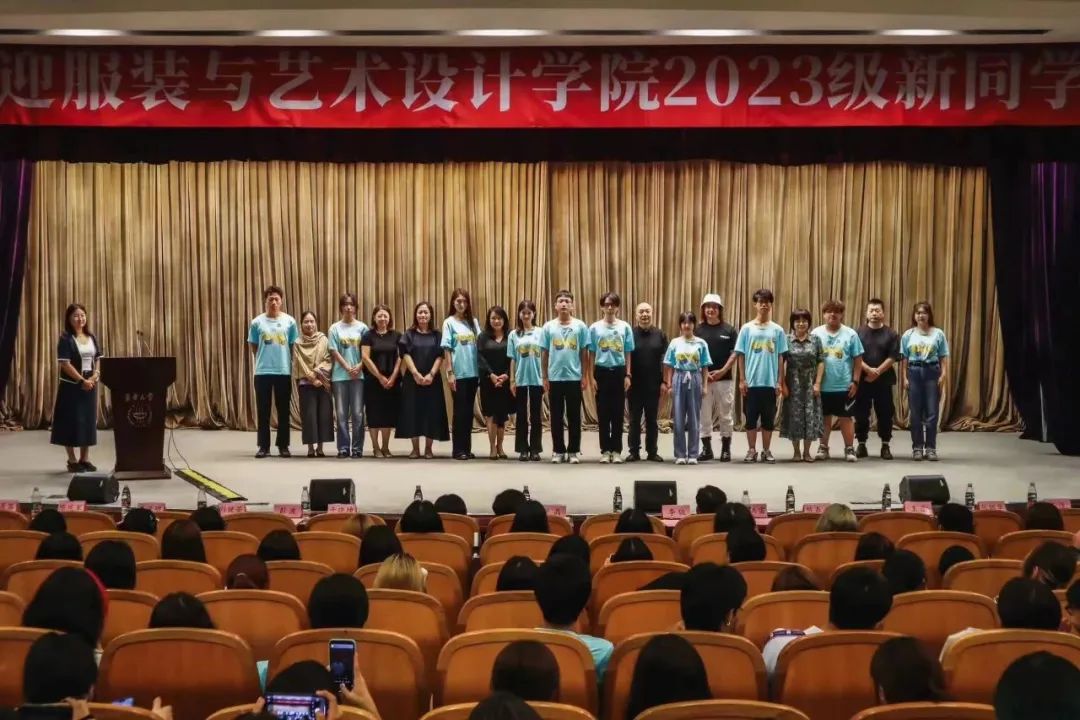在迎新大会上,陈庆军老师为全体2023级新生带了有趣有料有深度的开学第一课《在广阔天地构筑人生T台》。“广阔天地,场景无限”,他引导同学们要在无限广阔的天地之间学习与实践;“时尚呈现,尚善尚美”,他引导同学们要坚守道德底线,以人民为设计之本;“T型结构,构筑T台”,他引导同学们要学习共处智慧,在综合广度与专业深度中寻求平衡。