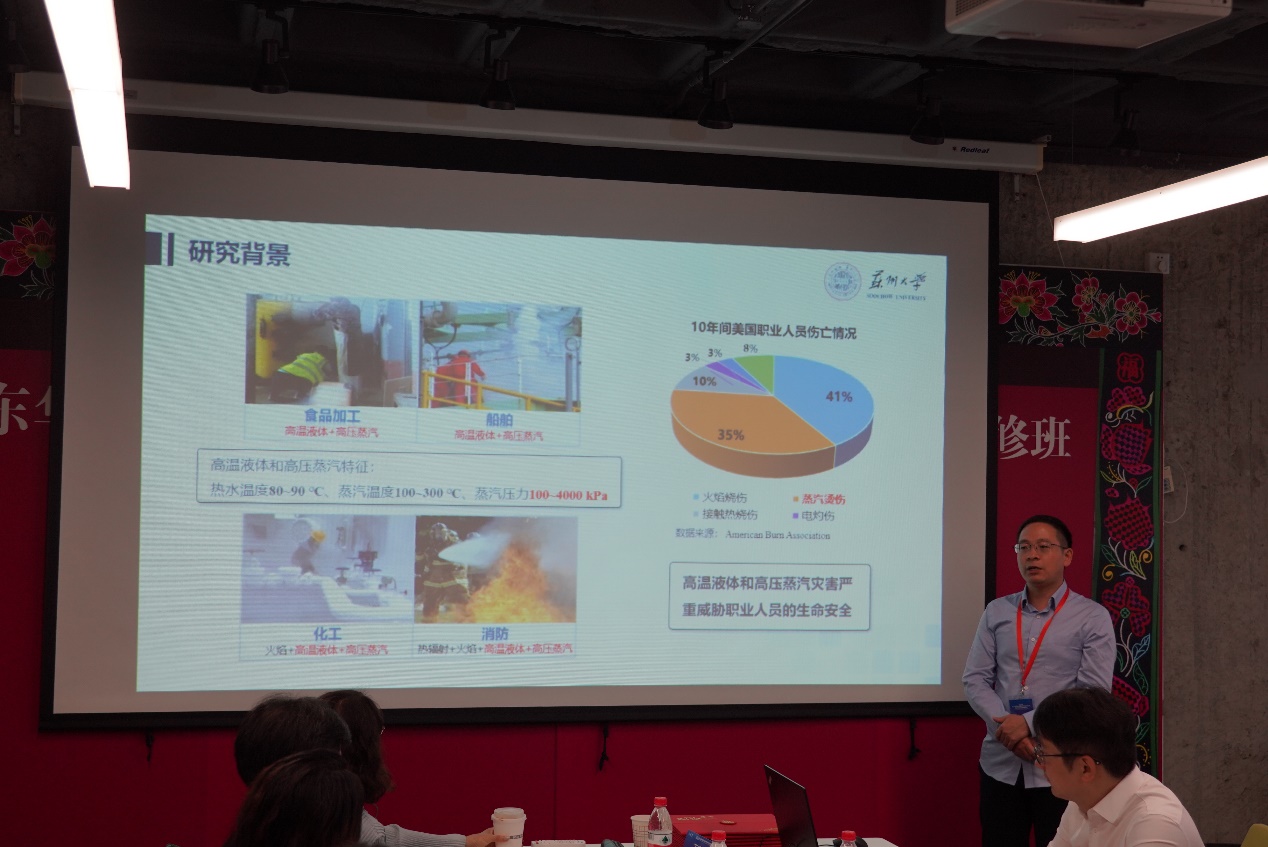 日本五级片 服装设计与工程系苏云副教授的报告主题是“相变微胶囊滴塑织物的制备及其在消防服中的应用研究”,他介绍了相变微胶囊在消防服中的应用现状及不足,提出了一种能够改善消防服热湿舒适性的工艺方法,并通过实验测试分析了不同滴塑工艺参数对消防服热湿舒适性、热防护性的影响,提出了最优参数设计。