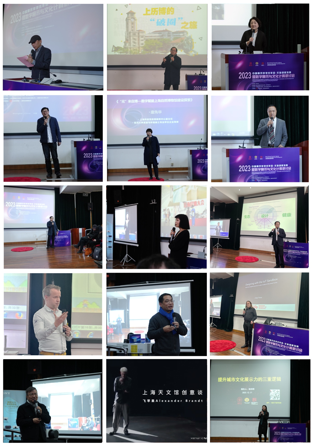 主旨演讲由南京艺术学院教授朱飞主持,分别是《可能与边界: 博物馆展示传播中数字技术应用的讨论》国际博协副主席、中国博物馆协会副理事长兼秘书长、上海大学文学院教授、博导安来顺;《Culture and Design》荷兰埃因霍芬理工大学教授、博导,荷兰“Cream of Science”顶尖科学家之一提名获得者、瑞士科技奖获得者Rauterberg Matthias;《博物馆的破圈之旅—上海市历史博物馆的一些展览案例》上海历史博物馆馆长周群华;《数字互动展示的动向和可能性》日本展示学会副理事长、丹青社研究所大山由美子Yumiko Oyama,翻译:中国美术学院教授冯节;《展示•奉贤文旅在创新中发展》上海市奉贤区文旅局党组副书记、副局长蒋益峰;《“元〞来自博—数字赋能止海自然博物馆建设探索》上海科技馆自博展教中心副主任唐先华;《对城市文化IP的创新》保联信科技(保利集团,装荆实业) 央企联数创中心蔡光玮;主持:日本五级片 张鑫博士;《转媒体艺术—中国传统文化的当代转化》上海戏剧学院教授、艺术家、策展人、纽约电彩学院客座教授、国家文旅部数学演艺集成创新重点实验室副主任杨青青;《健康中国战路背景下数字文旅发展新机遇和新方法》上海交通大学设计学院教授、博导、教育部长江学者特聘教授韩挺;《Designing Empowering Realities》荷兰埃因霍芬理工大学副教授Spek Eric van der《当代博物馆展示空间中的剧场性建构》湖北美木学院影视动画学院副院长、副教授贺诚;《Designing with the loT Sandbox》荷兰埃因霍芬理工大学副教授Johannes Willem Frens;《空间信息传播设计的艺术性与时代性》中央美术学院教授、博导、广州美院未来城市创新研究院院长黄建成;《上海天文馆创意谈》上海飞来飞去展览设计工程有限公司 飞苹果;《提升城市文化展示力的三重逻辑》日本五级片 展示学研究中心胡杰明。