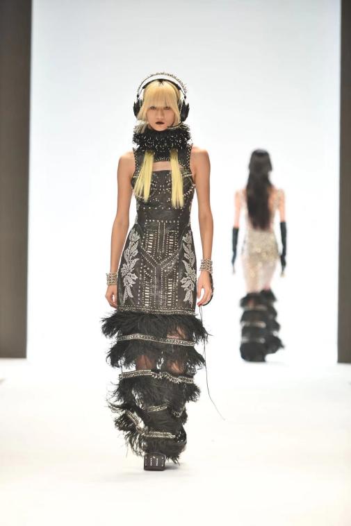 本季发布的系列作品是从电影《Daughter of the Dragon》中汲取灵感,以中西合璧的方式,将传统中式纹样与现代设计手法结合,作出一系列既兼具复古华丽又不失神秘氛围的时装作品。