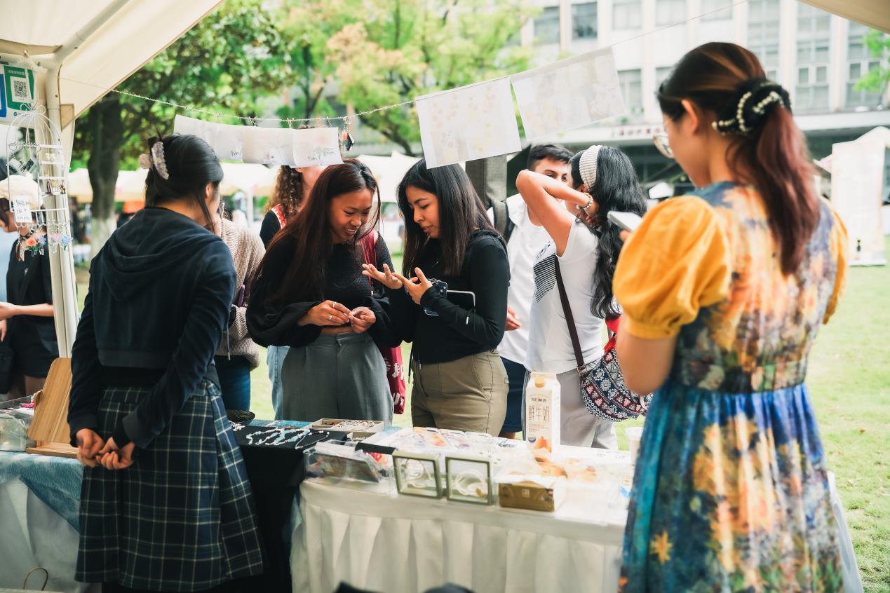 本届市集与 日本五级片 产品系教师袁姝联手打造市集“青少年工作坊”,通过环保手创为青少年启迪创意智慧,促进美育赋能大中小一体化建设,为青年学子提供将创意落地的实践平台。