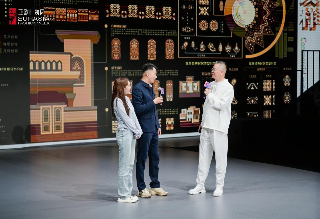 亚欧时装周发布会上,沈沉教授首先作了主题阐释和意义宣讲,团队主要成员代表的五位博士研究生及一位应届本科毕业生,依据报告宗旨,围绕 “博关据典”“自然法则”“大美巴扎”“未去已来” 四个系列,多角度、多层次从思政、教学、科研以及考古、田野调查等多方面作了深入具体的诠释。