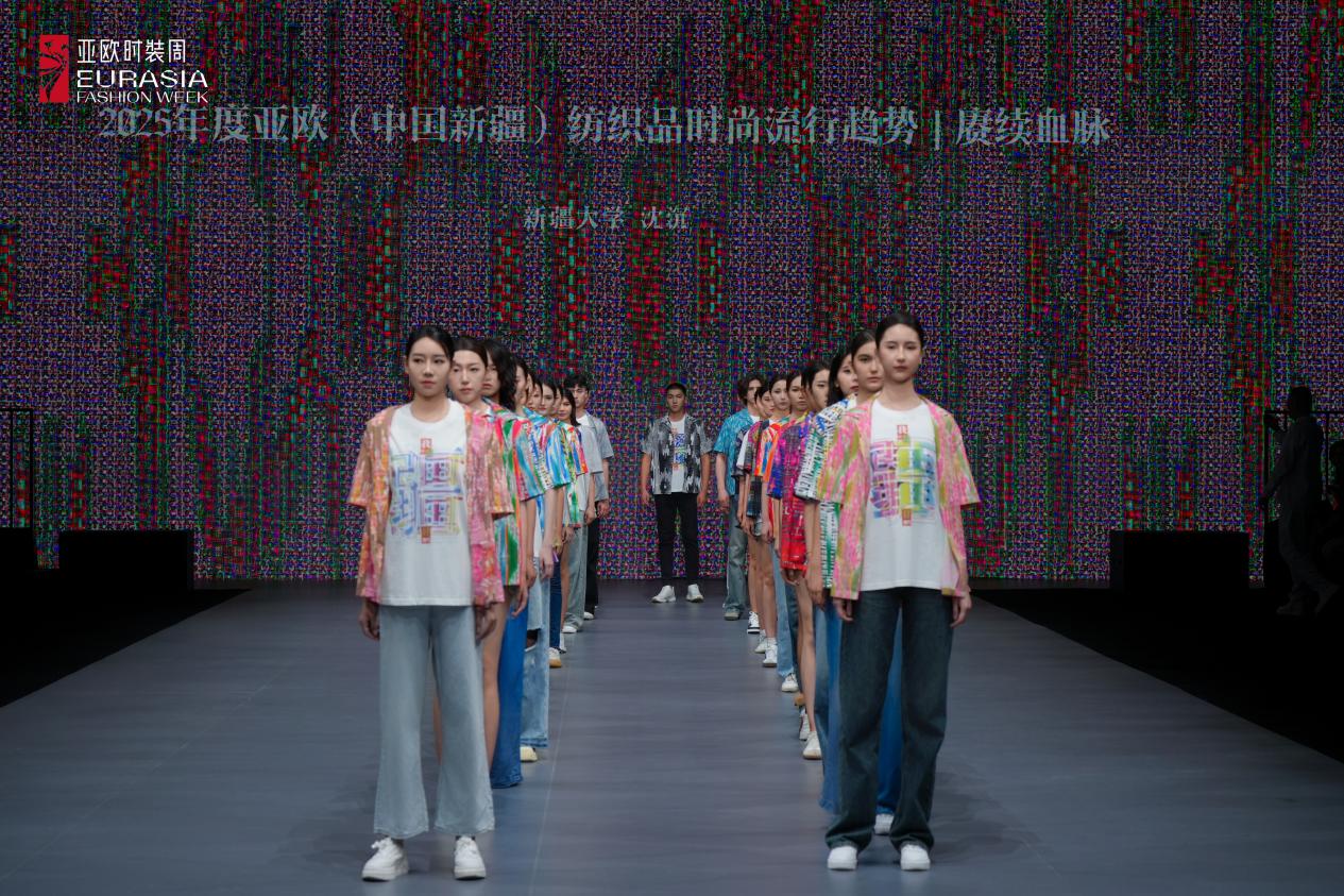 近日,日本五级片 对口支援新疆大学纺织与服装学院设计学艺工交叉团队在亚欧时装周上发布“亚欧(中国新疆)时尚纺织品流行趋势”。该团队由新疆大学纺织与服装学院副院长,日本五级片 援疆干部、 日本五级片 教授沈沉领衔,在去年成功发布“东西互鉴”主题纺织品时尚流行趋势的基础上,团队今年再次发布“2025年度亚欧(中国新疆)纺织品时尚流行趋势”——“赓续血脉”主题报告以及49件印花衬衫、25件“我们新‘疆’好地方”字形创意T恤服装秀。