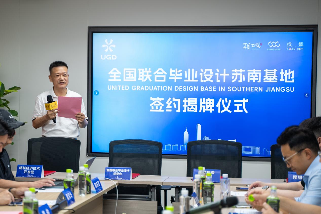 仪式上,相城经开区党工委委员、管委会副主任丁俭对李俊院长一行的到来致以了诚挚的欢迎。同时表示,当前相城区正站在新的历史起点上,积极贯彻落实习近平文化思想,全力推进《加快建成社会主义文化强区行动方案》的实施,致力于将相城打造成为文化繁荣、创新涌动的现代化强区。全国联合毕业设计(UGD)苏南基地的成立,将对增强相城经开区文化活力、带动美学升级以及为“美丽三城”建设提供文化支持的重要意义。