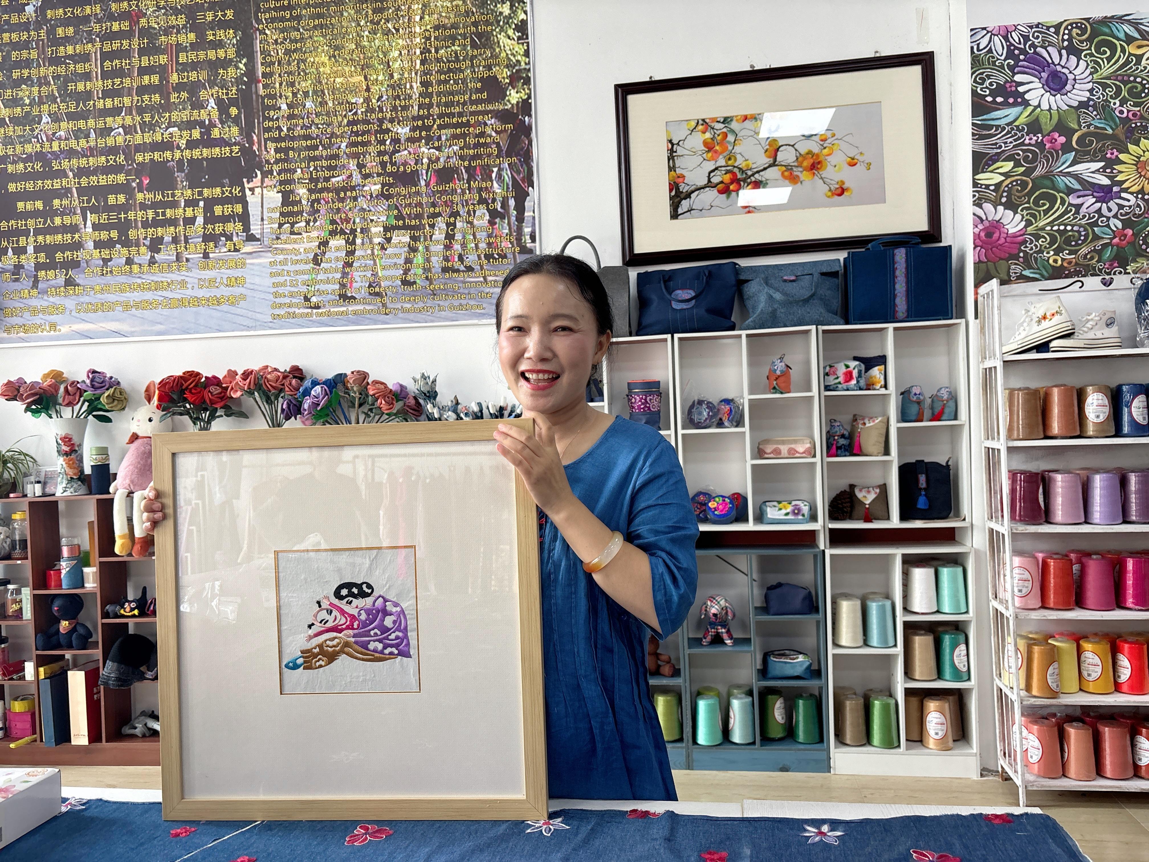学员潘艳在贵阳观山湖区创建了“梵西尔私人定制工作室”,将传统刺绣与时尚高定融为一体,目前已正常运转。