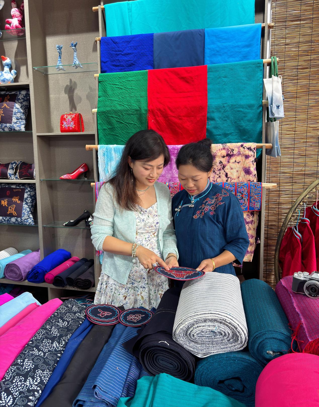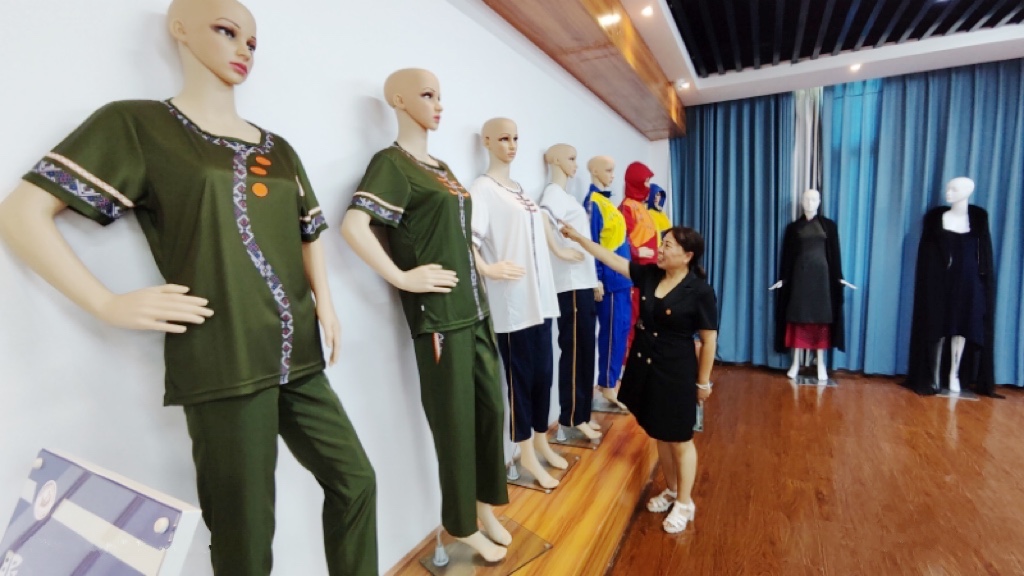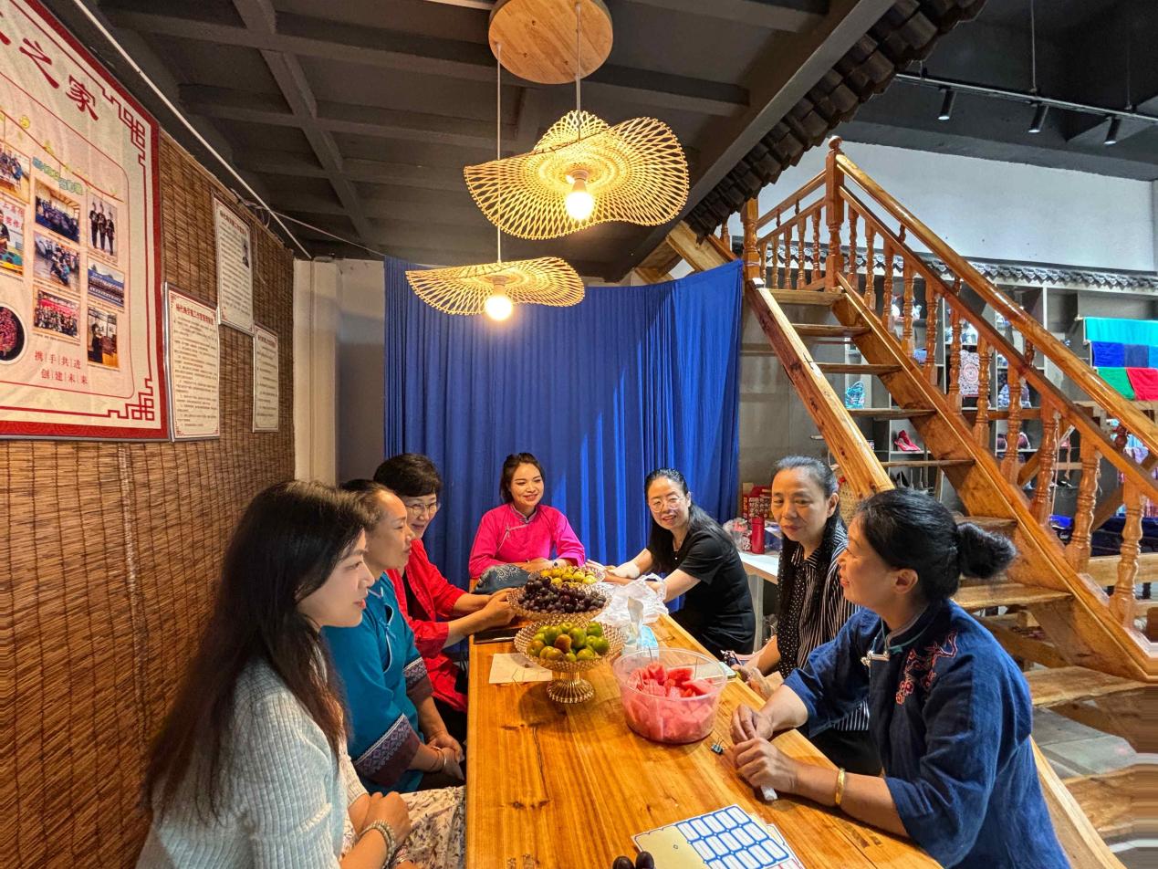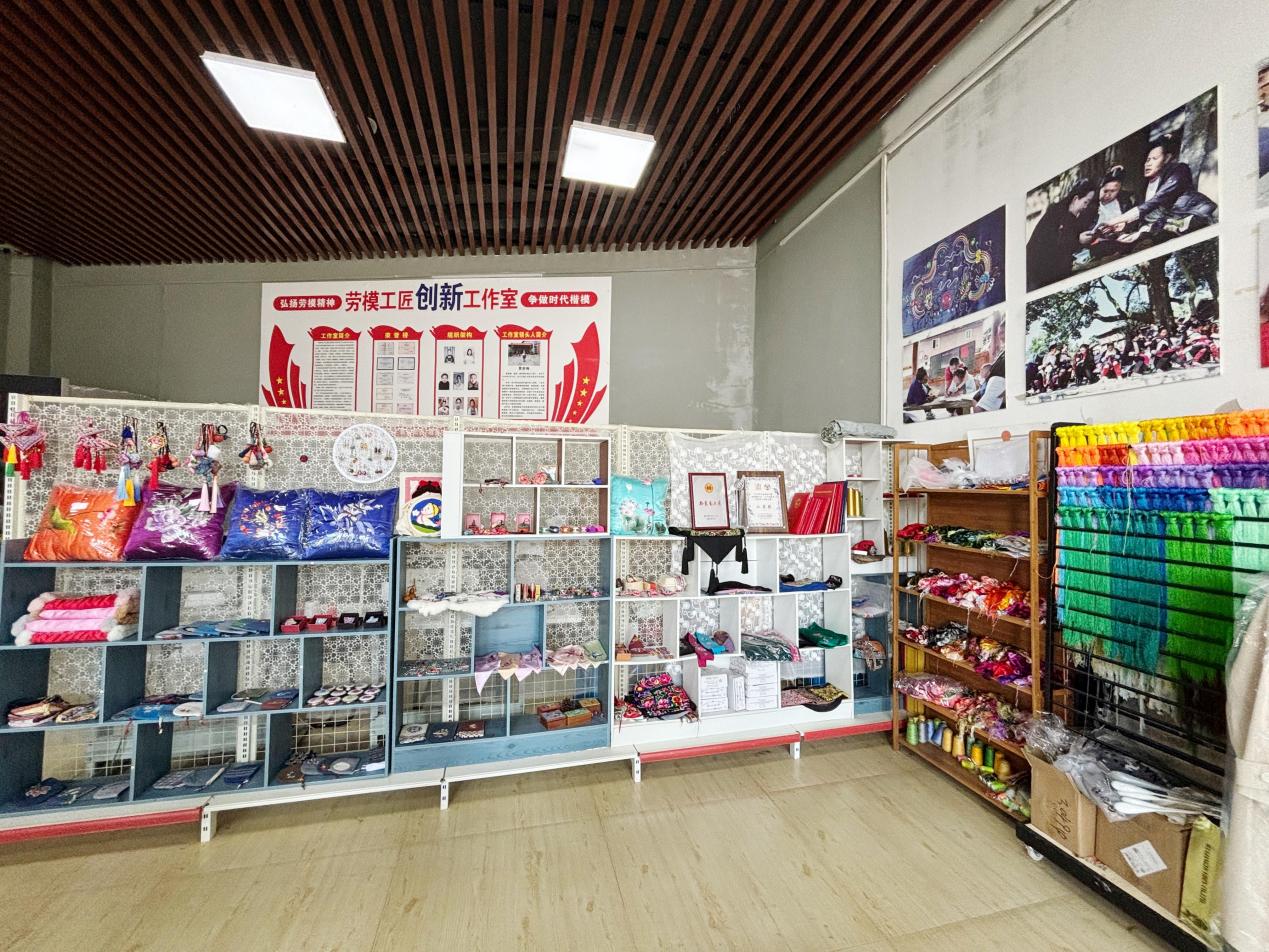 学员潘施妹创建了“天才妈妈梦想工坊”。工坊既是妈妈们展示手艺的地方,也是寨子里女孩们最爱来的场所。