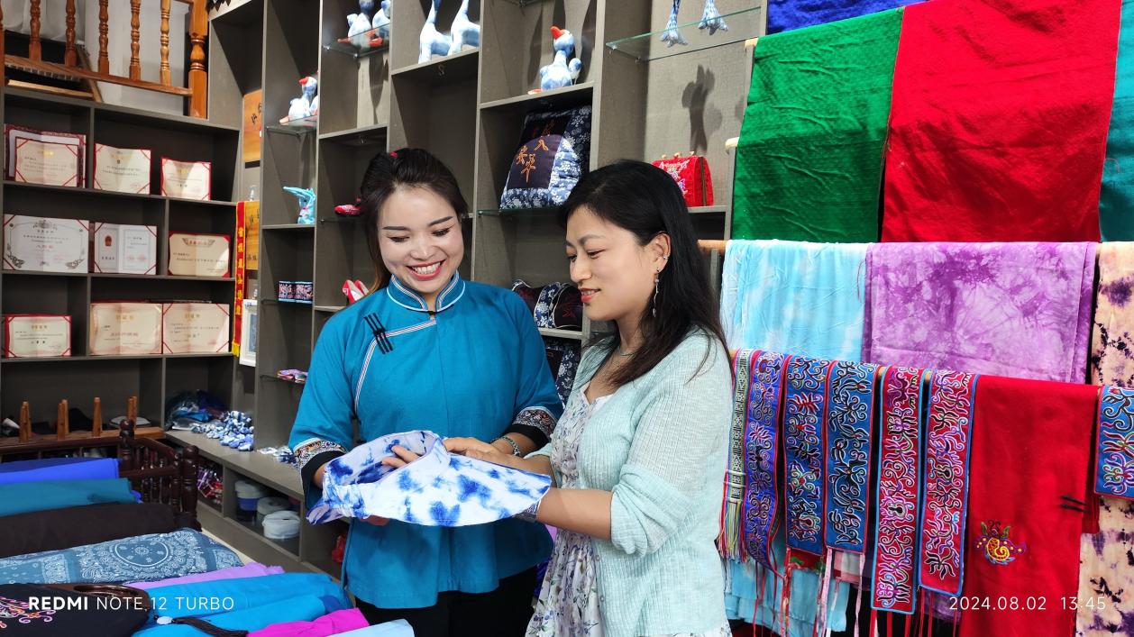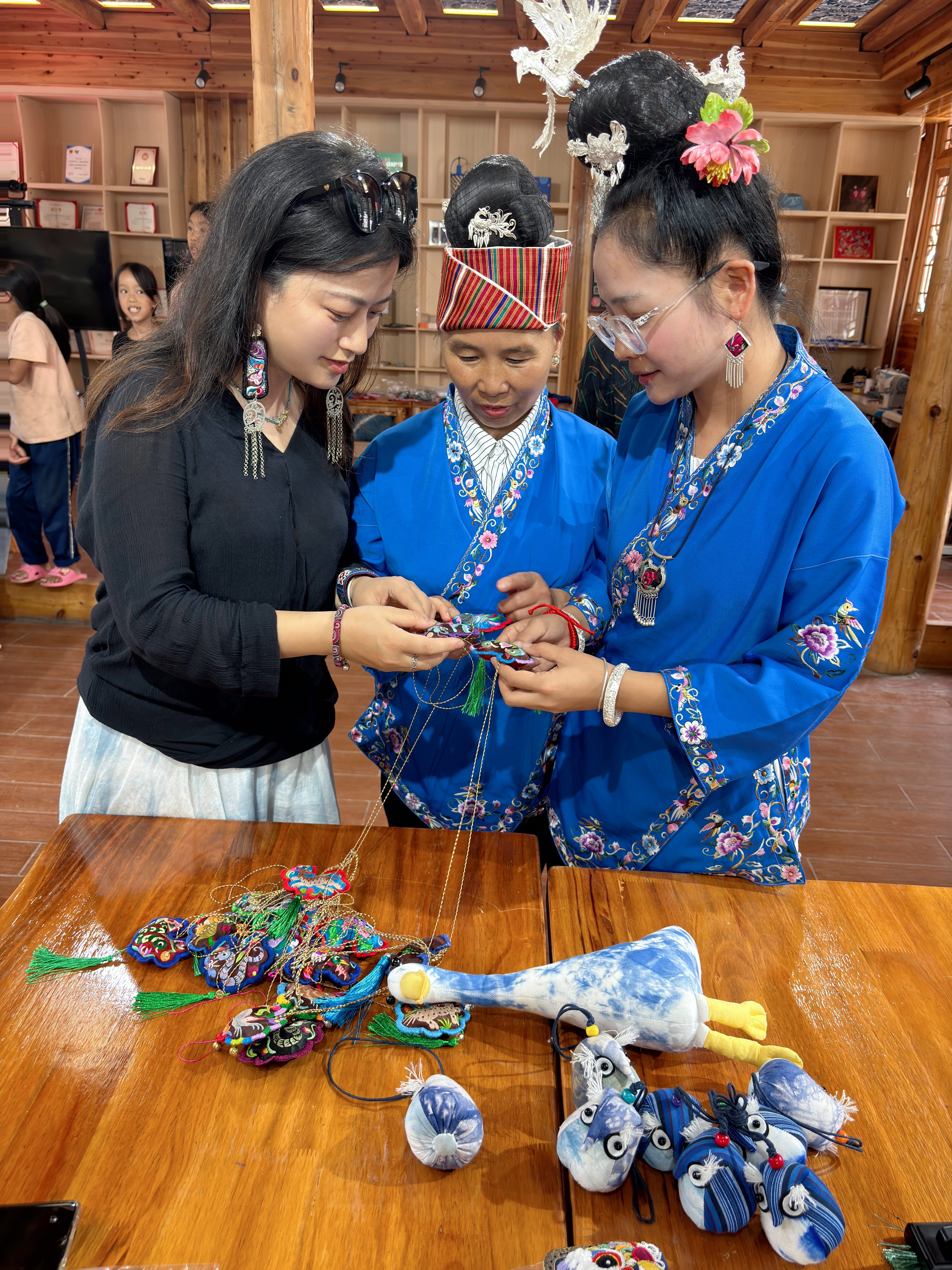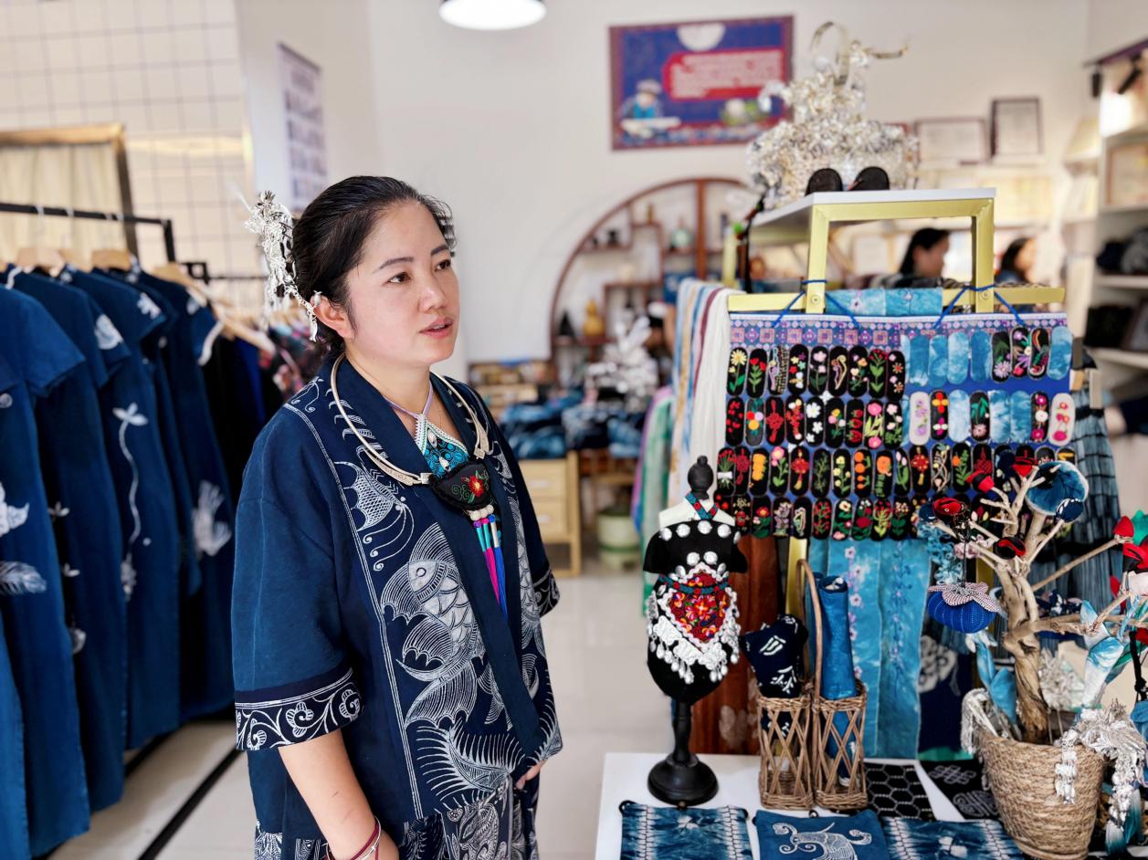学员潘施妹创建了“天才妈妈梦想工坊”。工坊既是妈妈们展示手艺的地方,也是寨子里女孩们最爱来的场所。