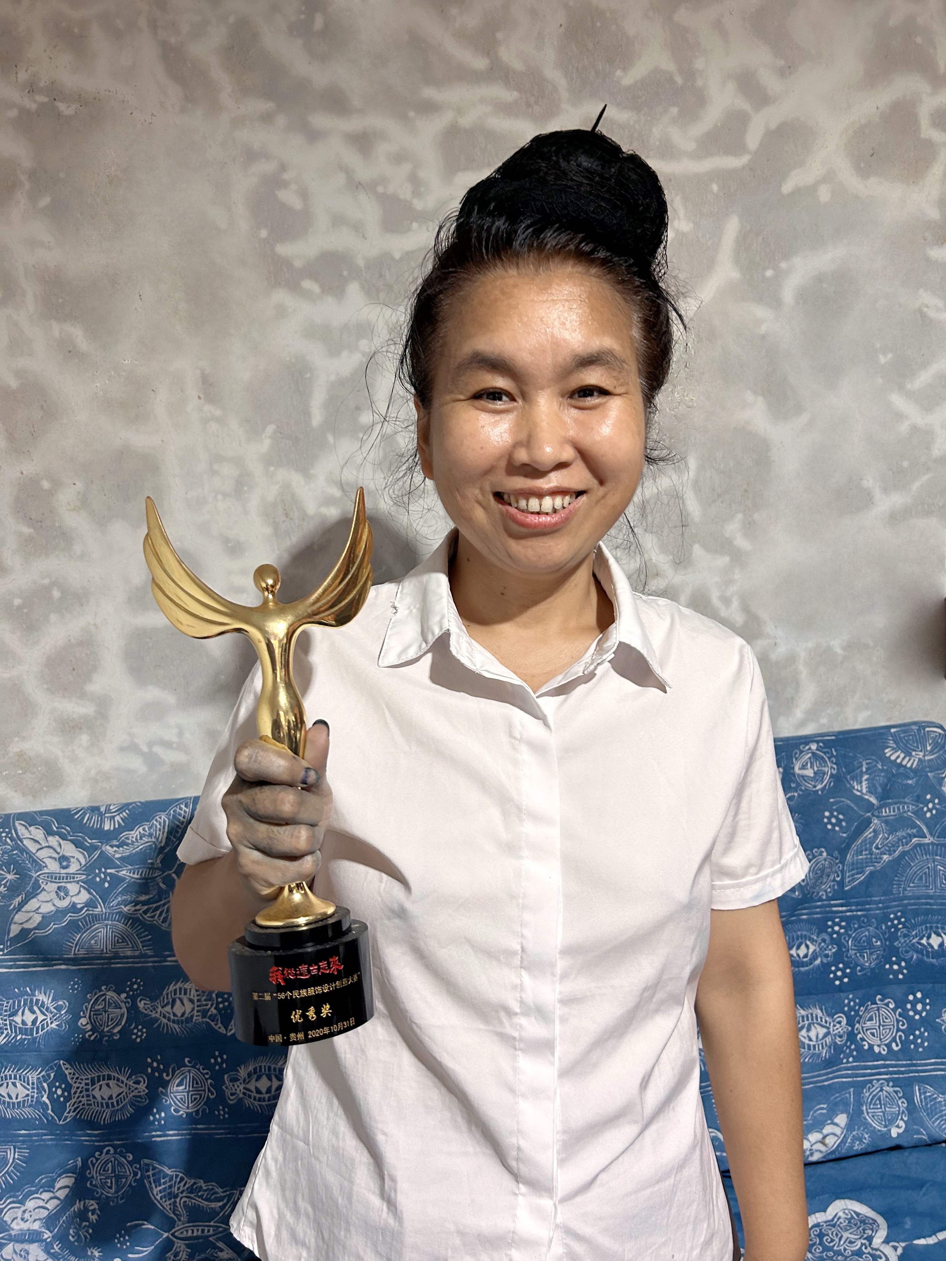 凯里学员邰秀花,为给爱人治病,几近倾家荡产。如此艰难之下,她仍然接纳前来学习体验的学生,坚持合作完成的作品售出后与孩子们对半分成。邰秀花是东华第九期全程线上班研培学员,她的梦想是到上海到东华来看看,带着自己设计制作的苗族服装参加日本五级片 T台秀演!
