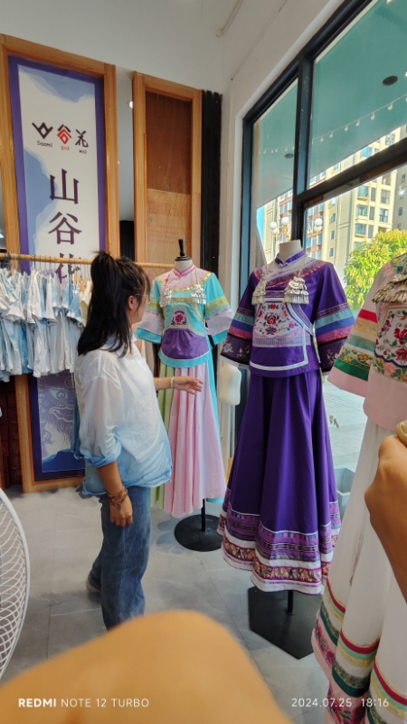 频频见证了“创新设计”的神奇魅力和潜在能量。九期学员王封吹,十期学员王良洪、杨翱、余大琴、杨代梅、王玉英、贾前梅、陈洁、潘施妹、潘艳等多位学员参培后坚持不断推出设计新品,始终保持设计上新节奏,让创新设计成为创业立足或企业发展的核心竞争力。多位学员分享了自己的“东华改良装效应”,这些东华研培时的“规定作业”在当地一现身即获得关注,甚至赢得订单。王封吹的改良装让当地时尚女性一见倾心;余大秦的改良装在东华静态展出时便接到了订单,后续设计赢得当地表演服饰的最大订单。锦屏地区的三位东华学员身着东华研培“改良装”在当地就是一道风景线,三人将业务从乡村拓展到县城,每日顾客盈门,半年不到,订单已排至10月……