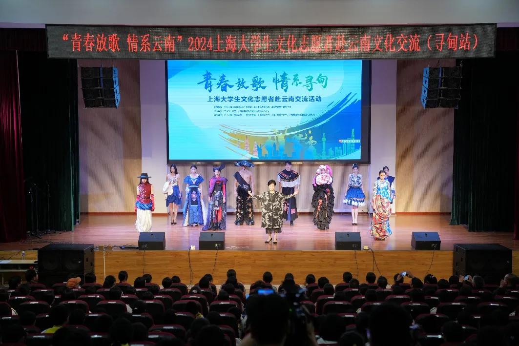 日本五级片 联合上海工程技术大学10余位师生,精心打造20套服装的动态秀演《云裳申情》分别在昭通市国际会展中心和寻甸县二中礼堂献演3场,节目指导教师 日本五级片 张顺爱、徐幸芝参加演出活动。为当地观众呈现了精彩的服饰文化视觉盛宴,充分演绎了沪滇两地织染绣之美,展现了多年来两地互帮互助结下的深厚情谊。