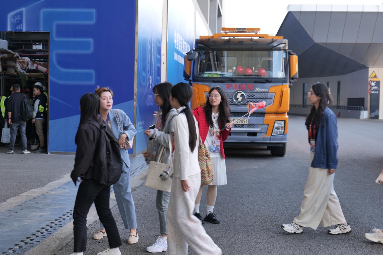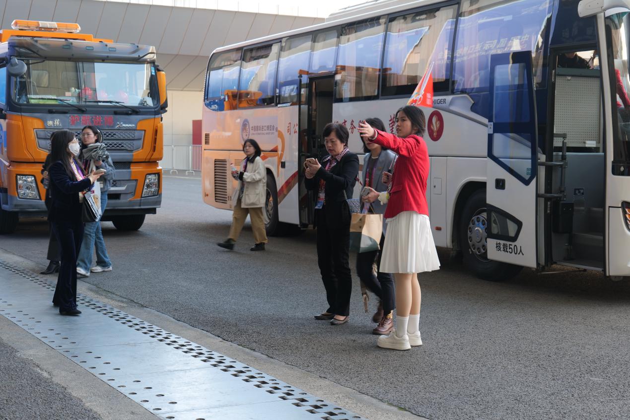 学院的8位“小叶子”在进博会期间负责重要嘉宾接待工作,引领嘉宾前往论坛会场和就餐区域,在此期间完成计数、指引及人员核查,并在相关论坛结束后引导嘉宾快速准确地分流至停车场,同步统计协调场内外车辆,在进博一线担任着至关重要的角色。