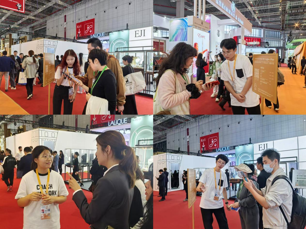 蔻驰(COACH)展台的工作类型与岗位多种多样,志愿者们不仅需要负责向顾客介绍包的类型及宣传品牌理念和匠心制作,还会在咖啡台负责收银和迎宾,介绍进博与线下门店的双重体验活动,吸引顾客。在此过程中,同学们的沟通能力和跨文化交际能力得到了极大提高,引导顾客的志愿者能有条不紊地将顾客分流到不同的展示区域,介绍产品的志愿者则能以专业又热情的态度应对每一个询问,而负责整理展品的志愿者总是能在第一时间让摊位保持整洁美观。同学们相互配合、相互鼓励,共同应对每一个挑战,真正展现了属于东华学子、中国青年的蓬勃力量!