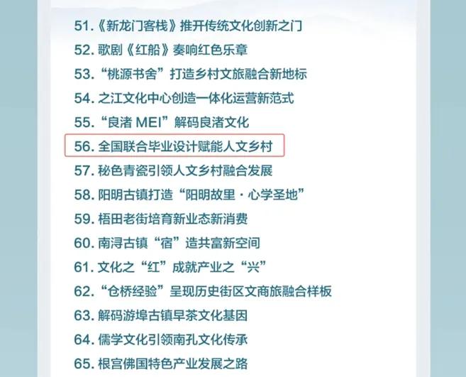 长三角人文经济典型案例遴选活动由上海市委宣传部、浙江省委宣传部、江苏省委宣传部、安徽省委宣传部共同开启。这些典型案例不仅是对长三角人文经济发展成果的又一次深度梳理,也是长三角乃至全国文化产业发展的重要导向。“全国联合毕业设计赋能人文乡村”案例是文化双向赋能的有益探索,更是东华用美丽中国生动故事固本铸魂的生动实践。