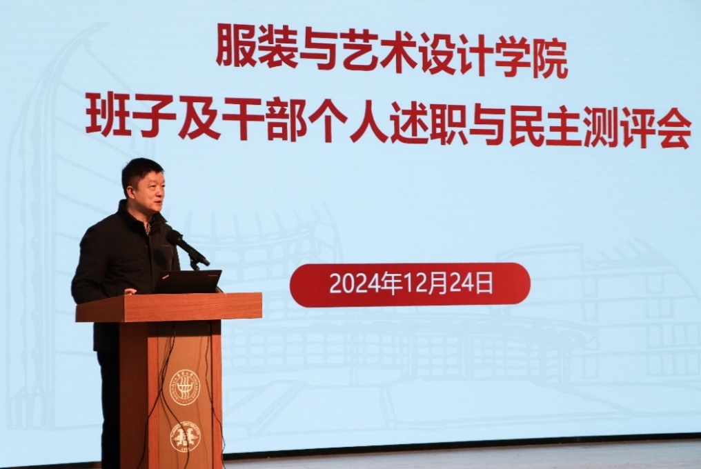 李俊代表学院党政班子向全体教职工进行班子年度工作述职,从党建思政、学科建设、队伍建设、人才培养、科学研究与创作活动、国际合作与交流、文化传承与社会服务七个方面对学院一年来的工作做了全面回顾和总结。他表示,学院要建强治理、育人、创新“三大体系”,支撑打好学科发展转型升级、拔尖创新人才培养、高水平人才队伍建设、管理效能提升“四场攻坚战”,期待2025年学院各项争取更大进步、再创辉煌。学院党政领导班子成员聚焦“德能勤绩廉”分别进行了个人述职,学校党委组织部进行了民主测评。