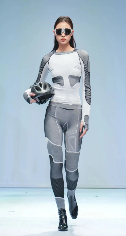 服装与服饰设计专业研究生学位作品展示呈现出更加注重于材料创新、工艺创新的特点,利用新型材料开发出具有特殊功能的服饰,如采用无缝针织技术及科技功能性面料的运动功能性服装;采用可降解生物塑料、回收材料再设计、环保服装加工工艺等开展可持续时尚的研究;或是对特殊工艺,如创意性褶皱工艺、特色面料再造工艺、创意染色工艺等开展实验制作成品。这些作品展现了工艺材料发展与时尚产业发展的互促互进,实现了研究生思维宽度和站位高度新增量。