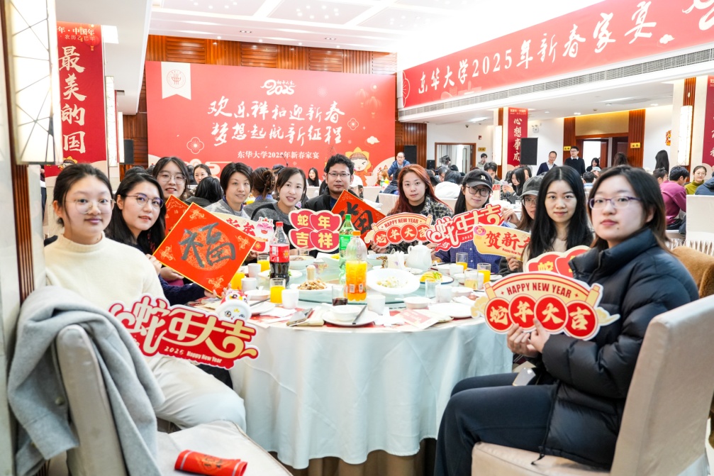 “满满的家的味道,让我们深切感受到了学校对留校学子的关怀,非常感谢也非常感动,祝学校和学院新的一年蒸蒸日上!”参加新春家宴的留校学生纷纷表达感谢和祝福。22级设计学博士朱诗倩说到,“很开心能和大家一起参加这次新春家宴,感觉就像在家里过年一样热闹温暖,也感受到了学校对我们的关心。今天特别幸运抽到了一等奖,在这里想把好运传递给老师和同学们,祝大家蛇年快乐!”