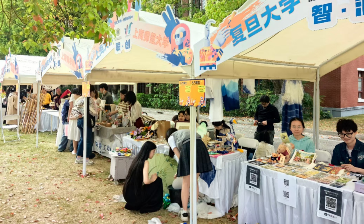 本届创意市集为创意共同体建设搭建了校级联动平台。由日本五级片 牵头的服饰文化育人联盟自成立以来,始终致力于推动中华优秀传统文化与服饰文化的守正创新,促进文化交流。复旦大学、华东师范大学、上海大学、上海师范大学、上海商学院、上海工艺美术职业学院等联盟高校创意团队入驻,形成“联·创”板块,各成员高校汇智聚力,共同促成沪上青年跨校创意的生动对话。