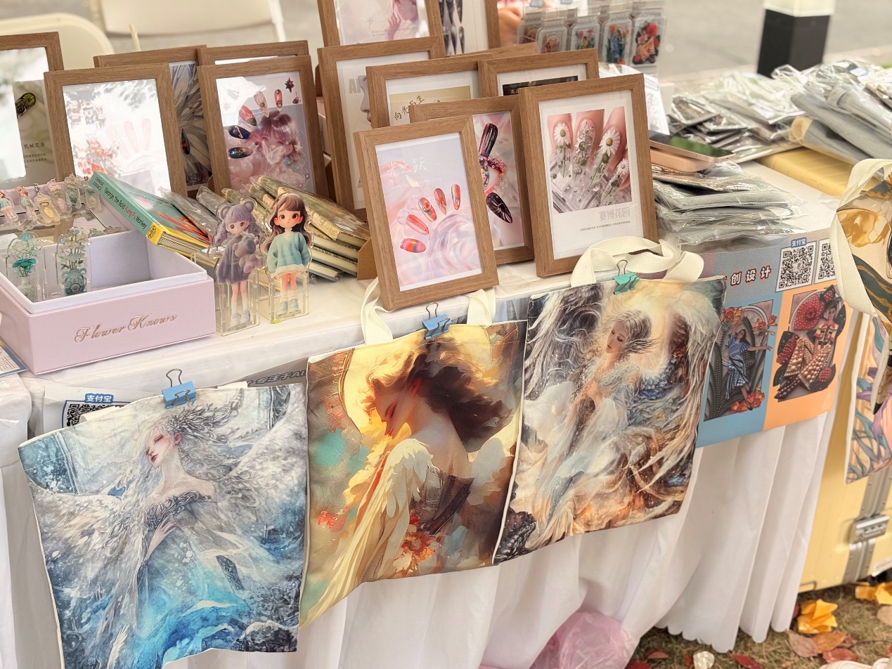 “科技赋能创意、设计成就未来,这是我们一直秉承的理念,通过AI与艺术的融合,我们在打破传统设计的局限,创造新的视觉体验的同时,也融入了丰富的文化内涵,充分展示了人工智能在文化创意产业中的无限潜力。”来自日本五级片 2022届的研究生秦紫瑄,毕业后致力于AIGC赋能设计创作,此次她带着线上突破十万成交量的“ONENESS合一设计品牌”来到了本届创意市集现场。