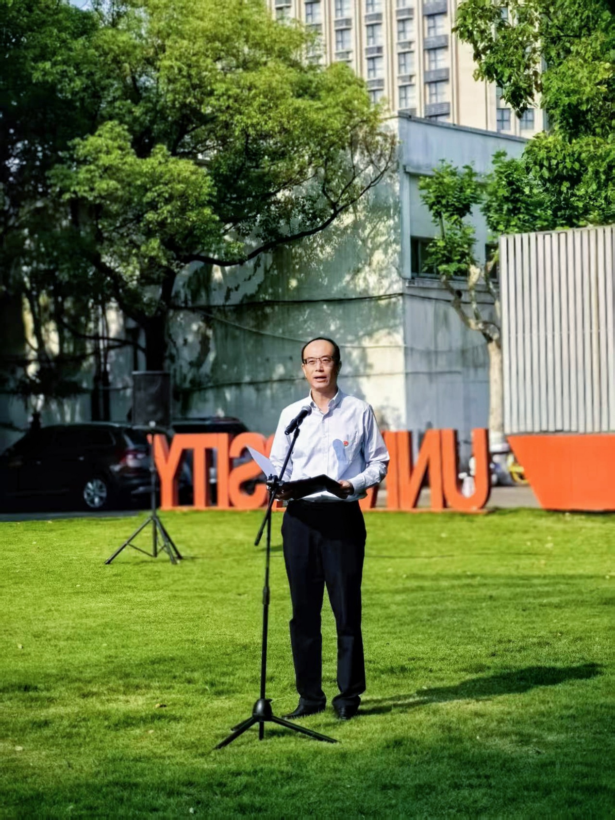 5月30日,一场庄严肃穆的纪念五卅运动100周年暨光华大学建校百年主题升旗仪式在延安路校区国旗广场隆重举行。副校长阎林平、校党委宣传部副部长孙庆华、校团委书记柴煜,学院党委书记徐玥、副书记陶莉和国旗护卫队党支部全体成员,以及延安路校区各学院师生代表共同参加,在国旗下回望峥嵘岁月,感悟初心使命,激发爱国热情。